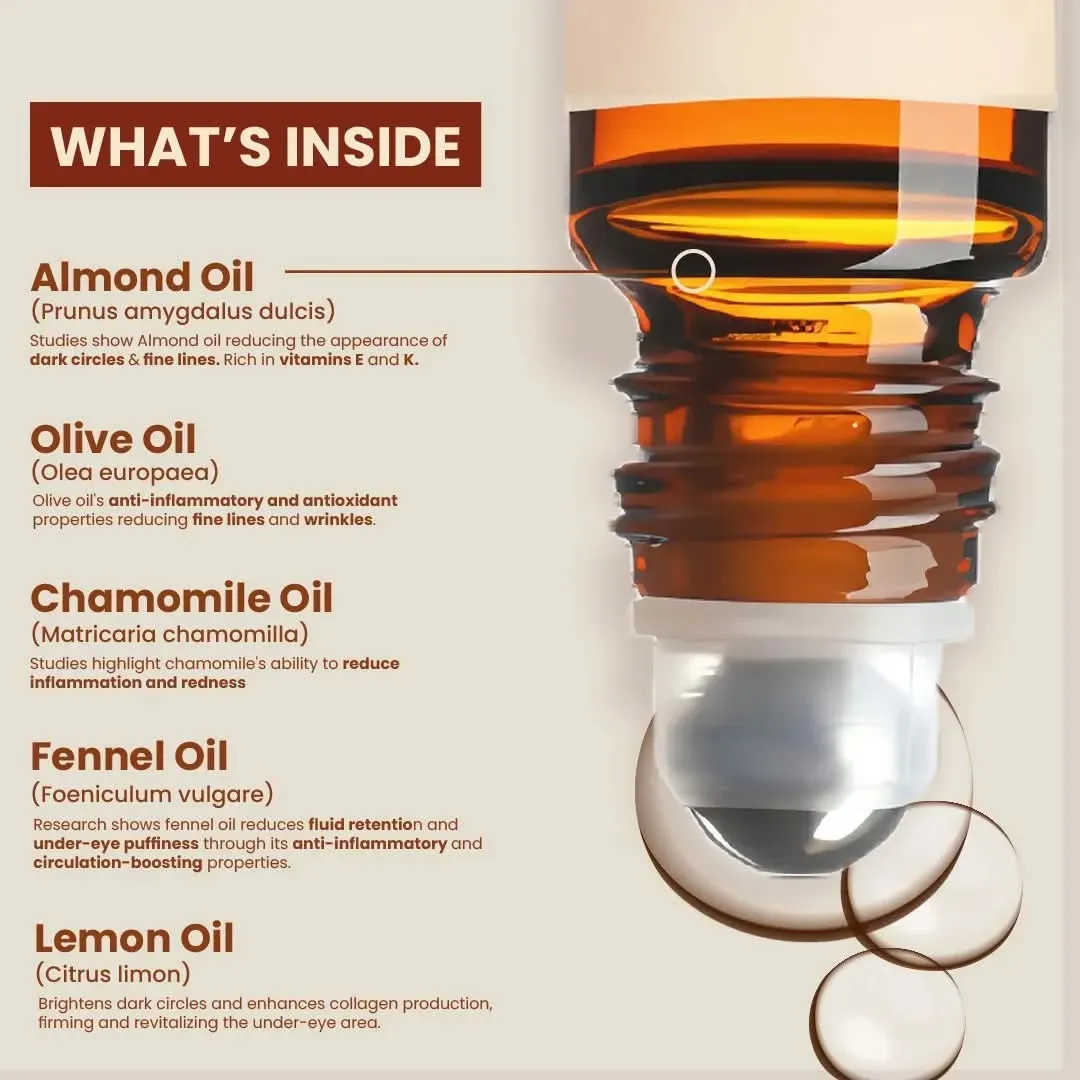 Apply the Eyelight Essential Oil Serum roll-on under your eyes.